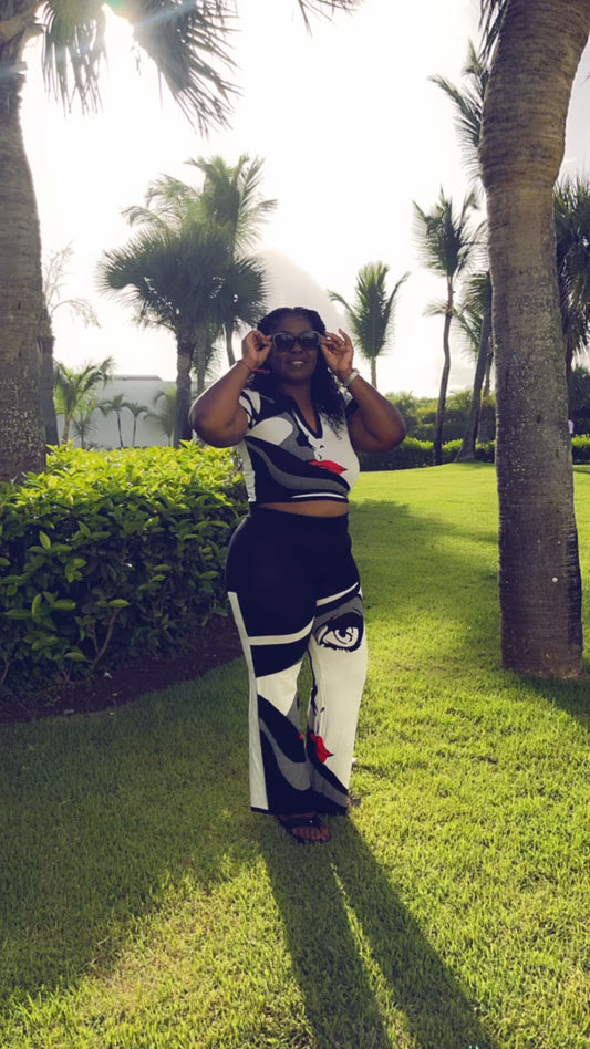 Tube top with elastic waist pants. Top and waist has stretch. Set fits true to size....