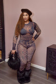 This set is leopard mesh with great stretch. It fits true to size and is totally sheer.