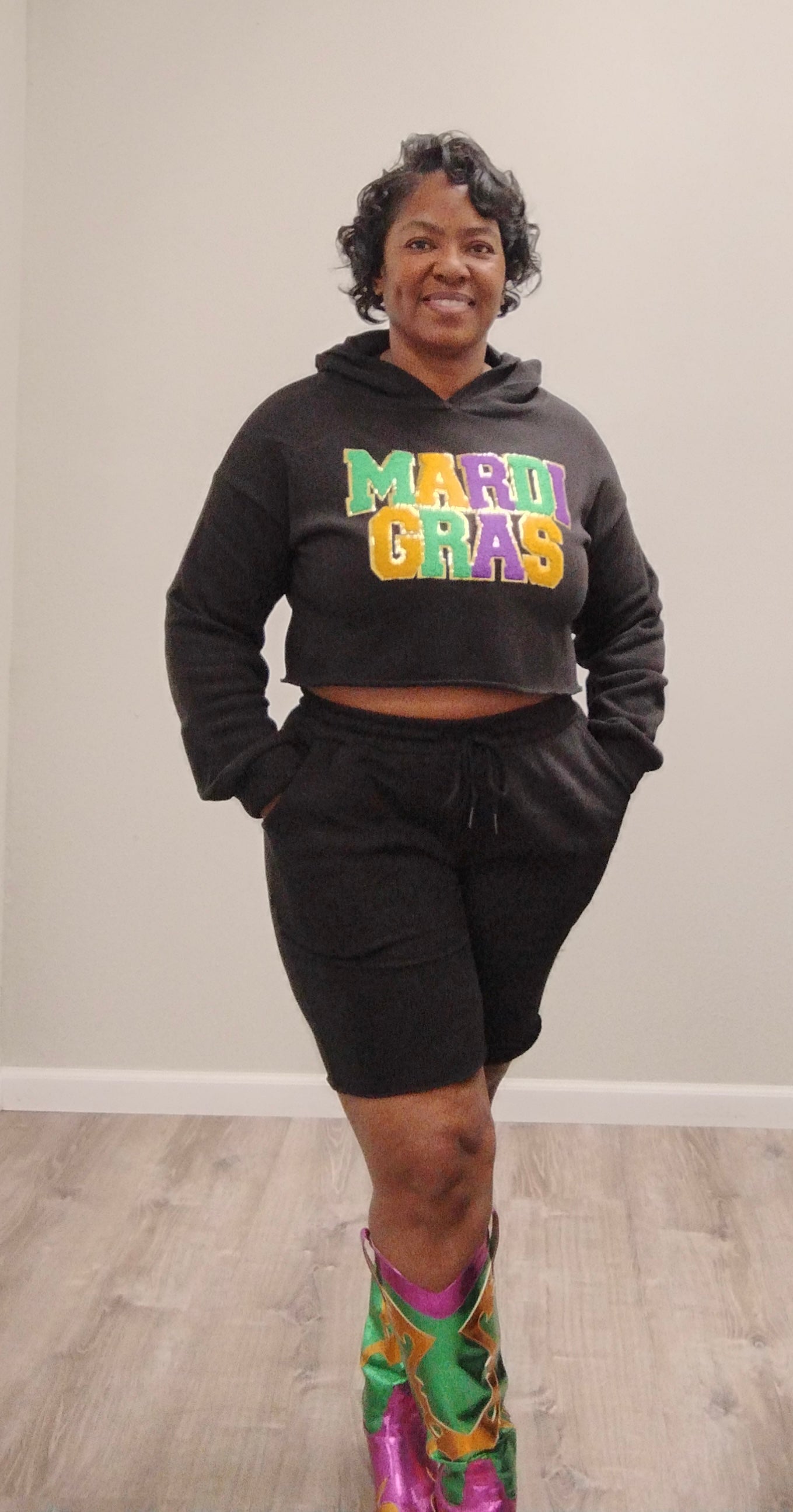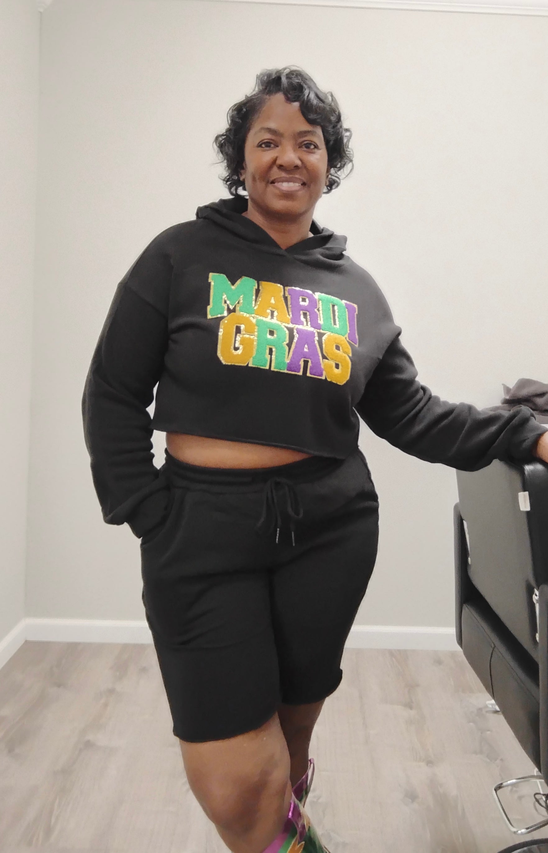 Mardi Gras Hoodie Shorts Set (Black)